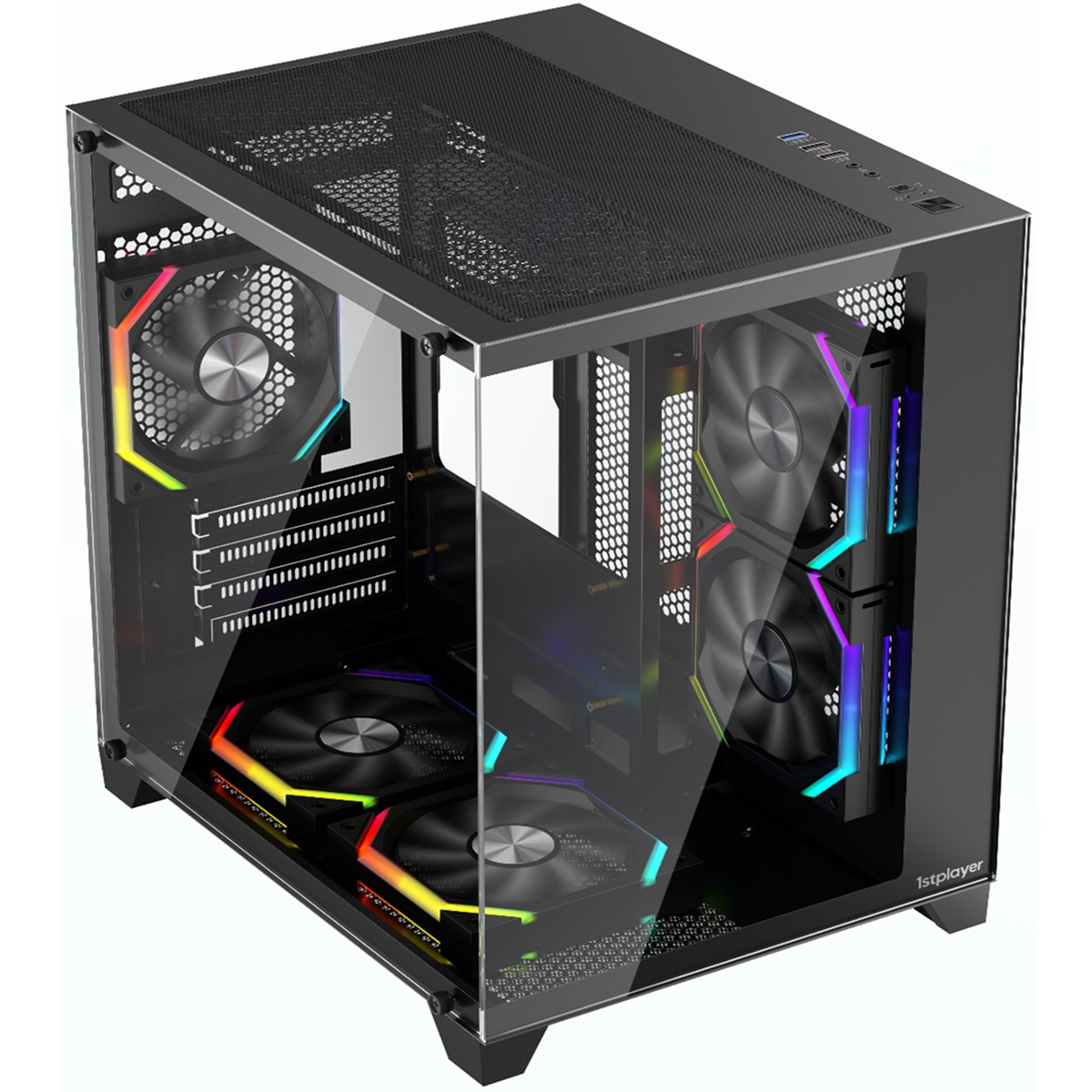Carcasa 1stPLAYER® Gaming BV5-bk, 5 ventilatoare aRGB plus PWM, Micro-ATX, telecomanda, negru