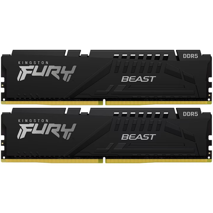 Specificații: Memorie RAM Kingston, DIMM, DDR5, 64GB, 6000MHz, CL40, 1.35V, FURY Beast, Kit of 2